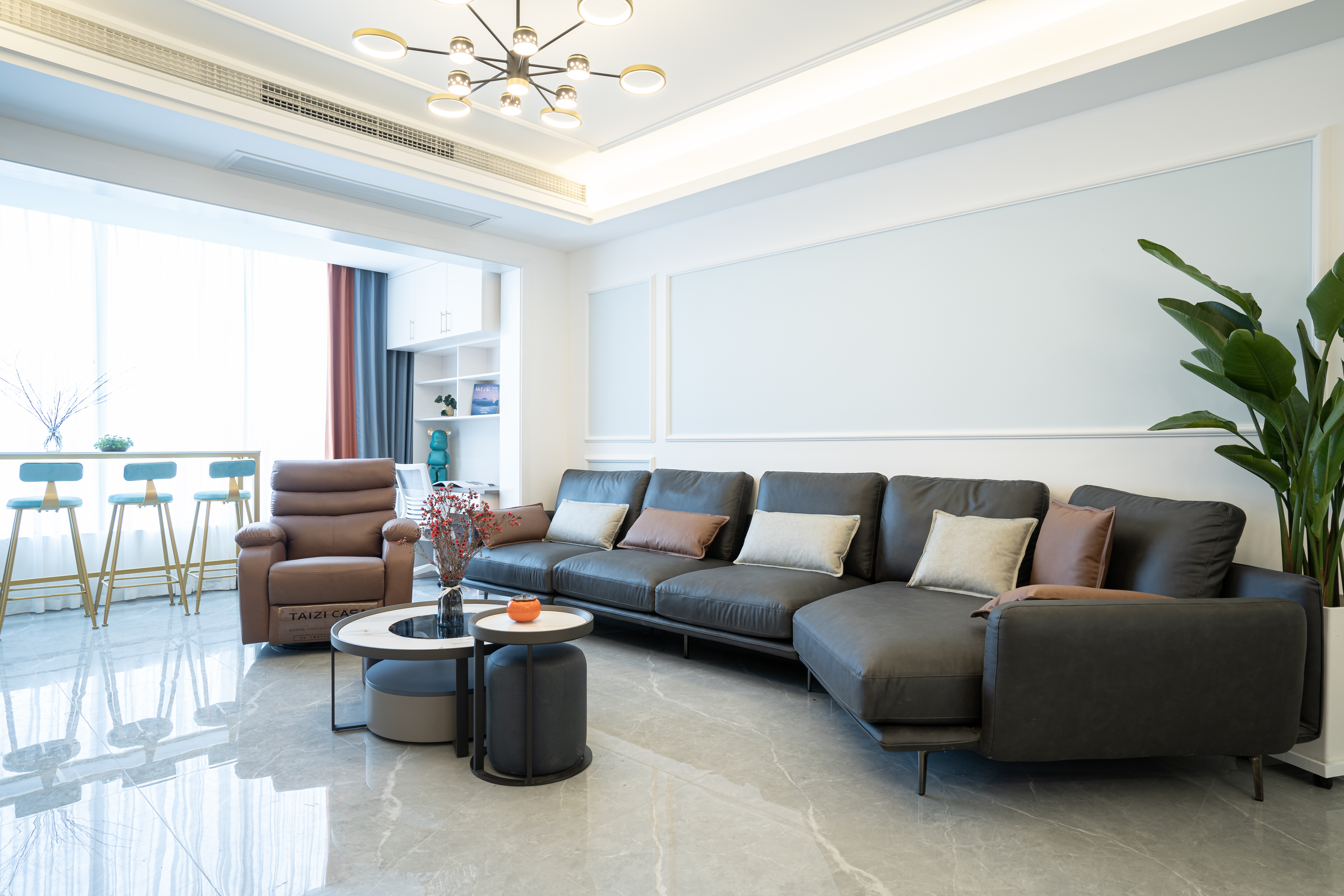 140㎡的4口之家,客廳沙發(fā)擺放有講究